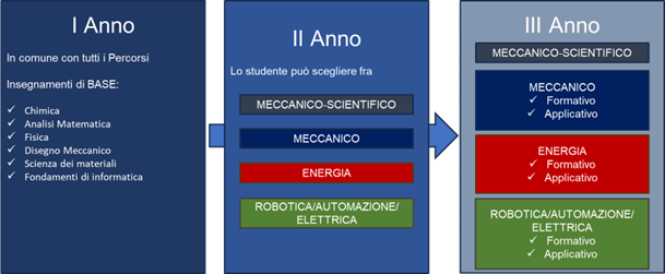 Il Corso di Laurea offre, pertanto, complessivamente 7 percorsi, 3 per l’area di Meccanica, 2 per l’area Energia e 2 per l’area Automazione, Robotica ed Elettrica: